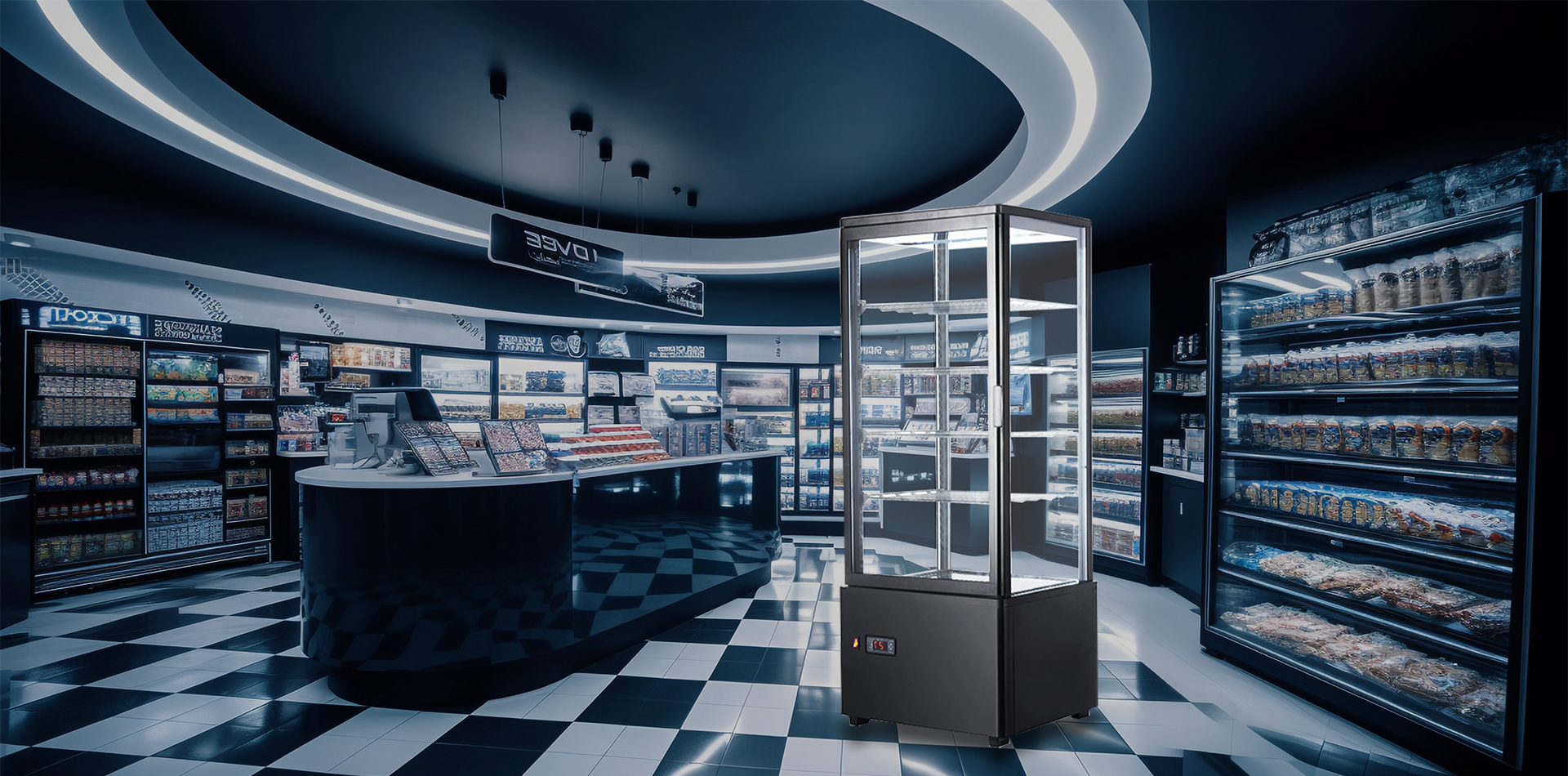 • 四面玻璃冷藏展示柜XC-98L(1R) (顏色黑白可選)